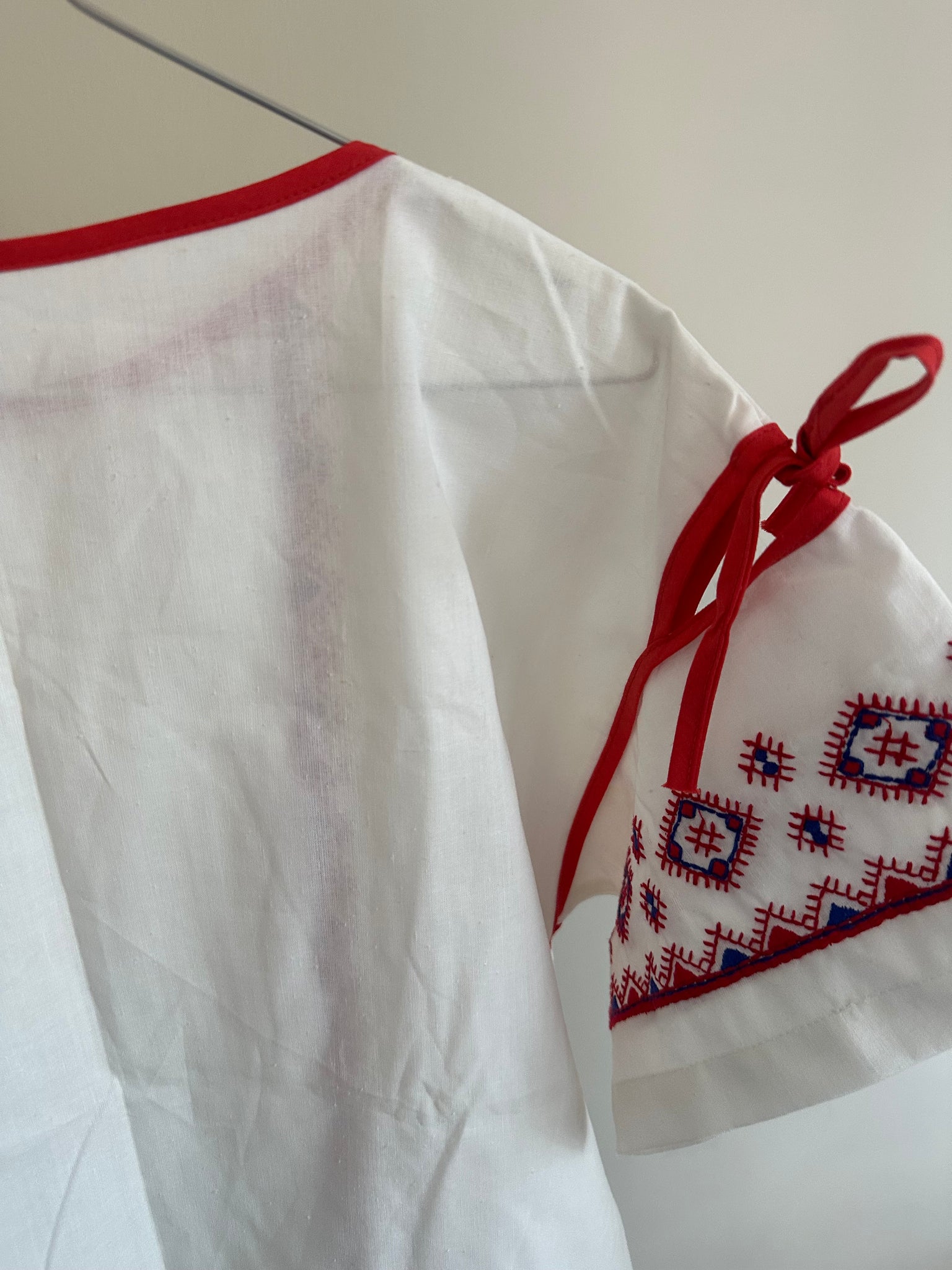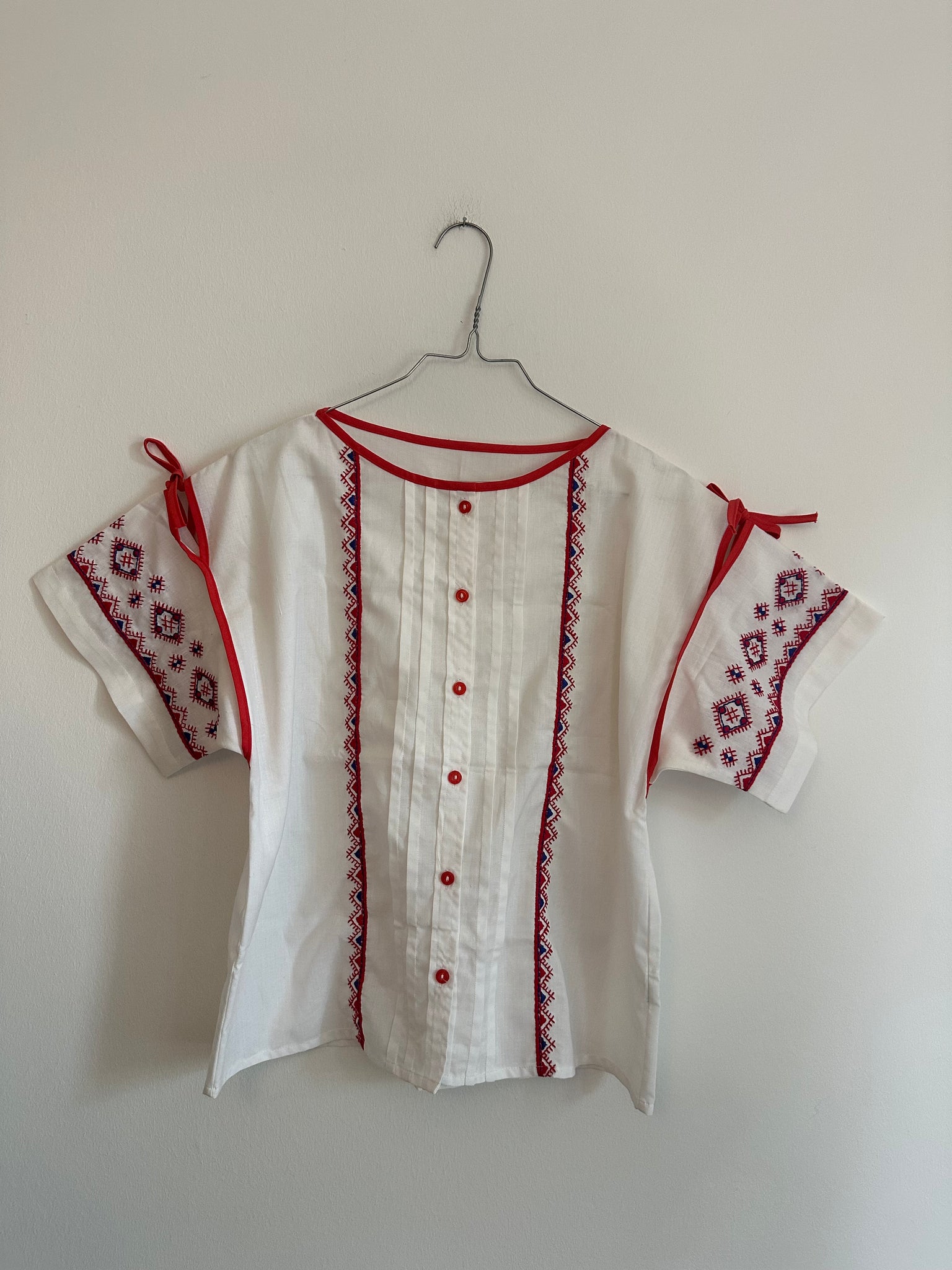 Smuk hvid vintage bluse med broderi og kantbånd. Fra 1960’erne.