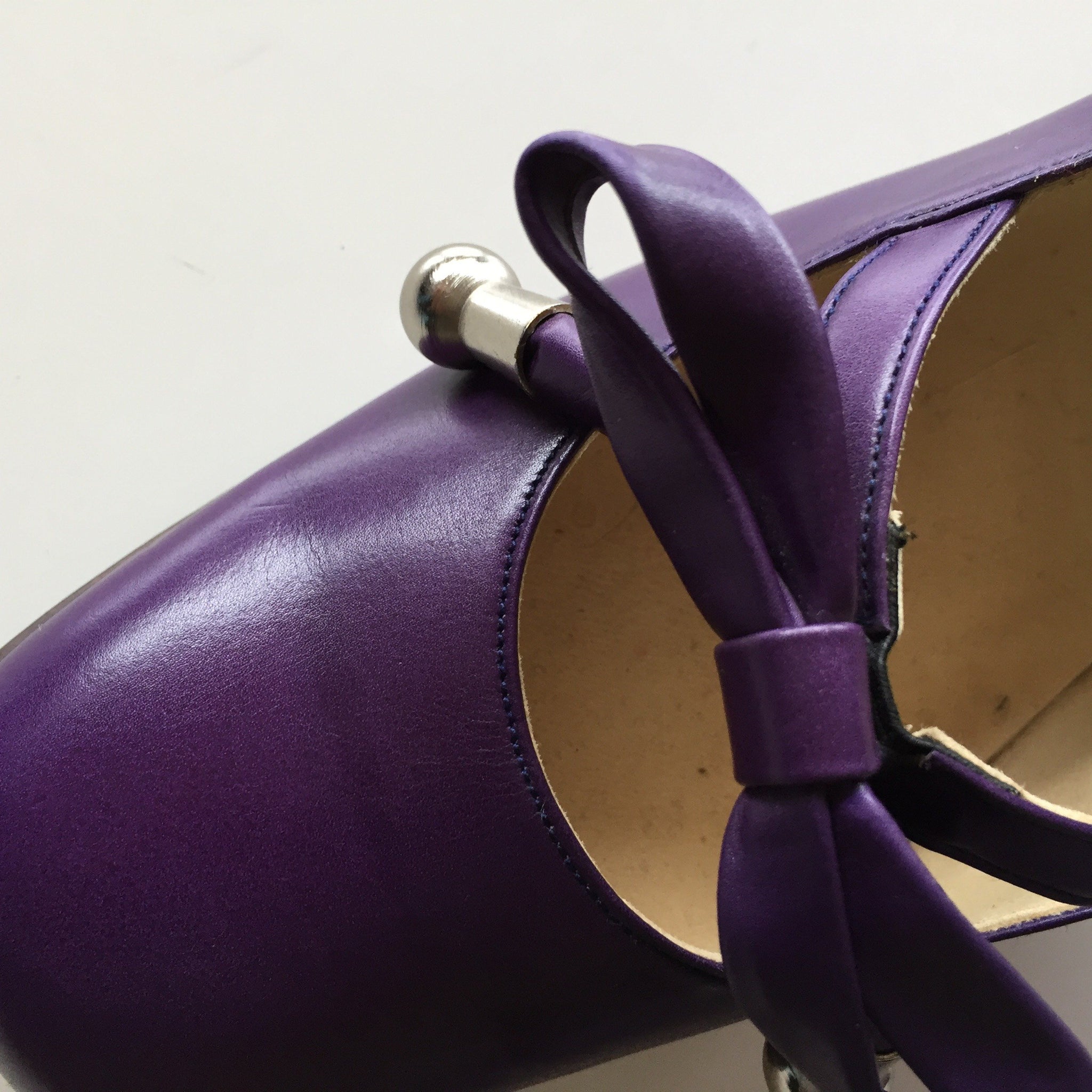 Amazing purple Mary Janes with bows. From the 60s. Leather. In very nice condition. See photos. Size 36. 24 cm Height 7 cm