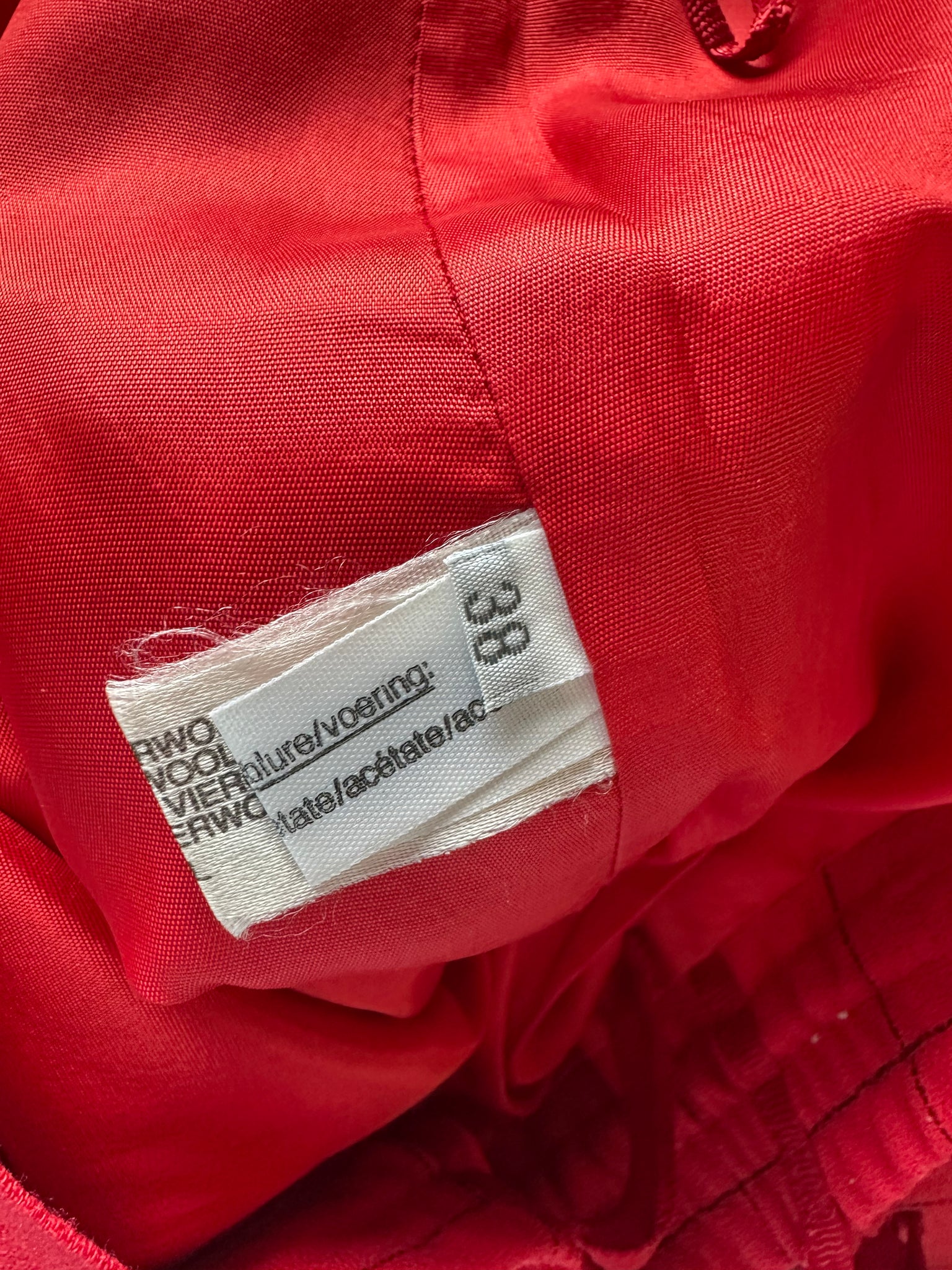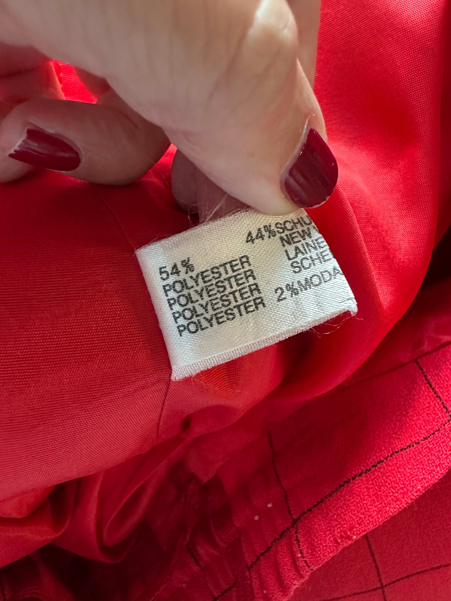 Fin rød midi neder del med mørkeblå tern. I Forret. Gålæg for og bag. Elastik i side af lining. Uld blend ( 54% polyester 44% uld)
